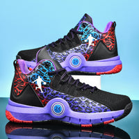 These basketball shoes are designed for comfort and performance, featuring a breathable Flyknit and synthetic leather upper that ensures ventilation during intense summer workouts. The rubber sole provides reliable grip and durability, ideal for both basketball and volleyball activities. With a knitted fabric inner lining and front tie strap design, they offer a secure and comfortable fit throughout your sports sessions. Available in multiple color options such as Black, Moon, Black Yellow, Black Blue, and Black Purple, these shoes are tailored specifically for adult men who demand both style and functionality on the court.