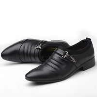 These men's leather shoes combine style and practicality, designed for business casual settings and everyday wear. Available in black, brown, and white, their synthetic leather uppers offer a sleek, polished look while being durable and easy to maintain. The rubber sole provides reliable traction and comfort for long hours on your feet. Perfect for young professionals and trendsetters alike, these pointed, slip-on shoes deliver both convenience and a modern touch to your wardrobe, making them ideal for busy days and dynamic lifestyles.
