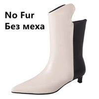 Fashion Design Women Short Boots Thin Heels Genuine Leather Mixed Colors Office Lady Party Shoes Woman Autumn Winter New