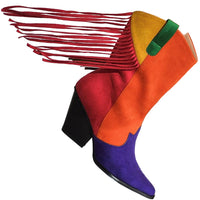 Female Faux Suede Fringed Cowboy Boots Autumn Winter