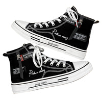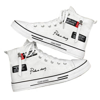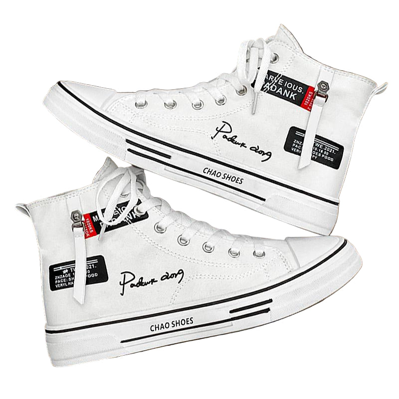 These high-top board shoes blend contemporary Korean design with classic student style, offering a versatile look for men. Crafted with durable canvas uppers, they provide breathability and comfort for everyday wear. Featuring a round toe and low heel between 1-3 cm, these shoes ensure ease of movement and support throughout the day. The lace-up closure allows for a secure, adjustable fit. Available in black, white, and blue, and sizing from 39 to 44, they complement various casual outfits while keeping your feet comfortable and stylish. Ideal for those who value trendy yet practical footwear.