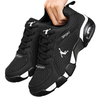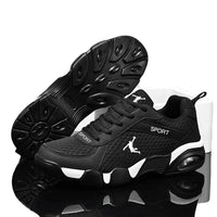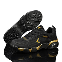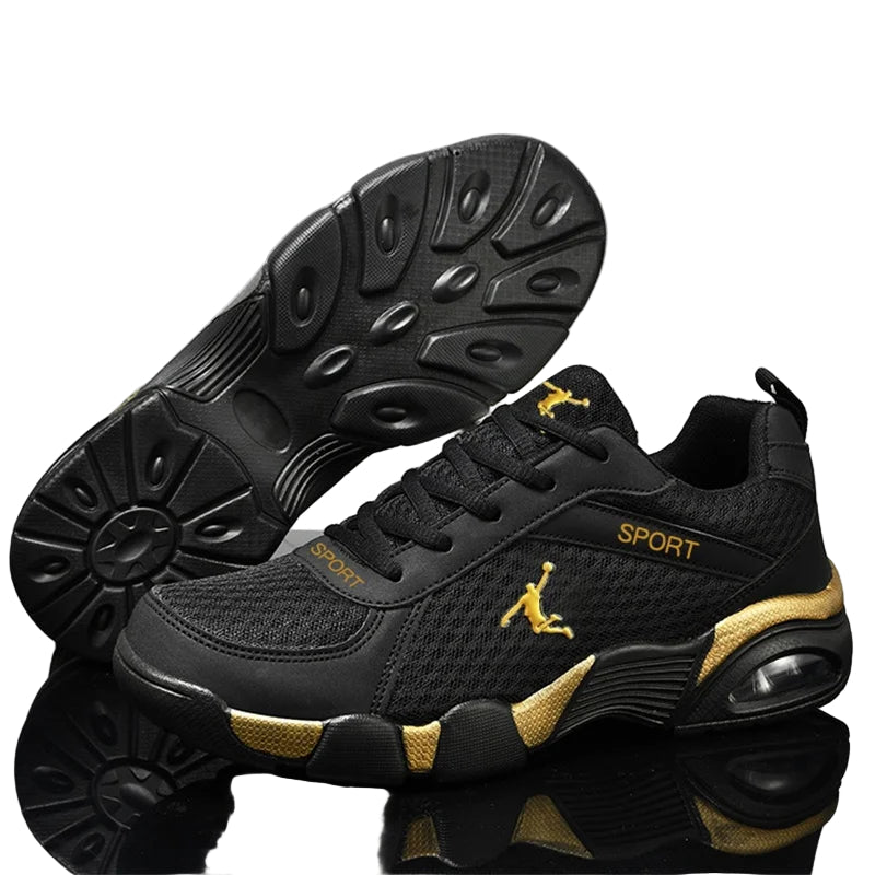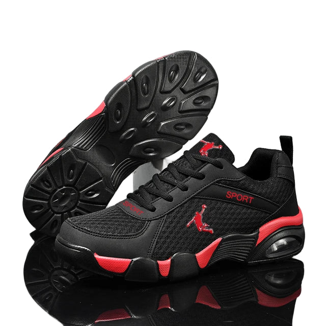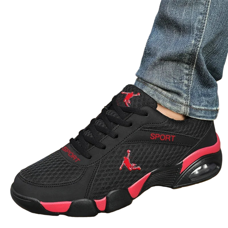 Designed for men who value both style and function, these versatile running shoes offer unmatched comfort and support for casual wear and sports activities alike. Available in multiple color combinations including BlackRed, BlackGold, and BlackWhite in both leather and mesh options, they cater to diverse style preferences. Crafted with durable artificial PU material and a low 1-3 cm heel, these shoes provide reliable cushioning and flexibility. The front strap closure ensures a secure fit, while the rounded toe design enhances comfort during extended wear. Ideal for leisure and everyday use, these shoes combine expert craftsmanship with practical performance.