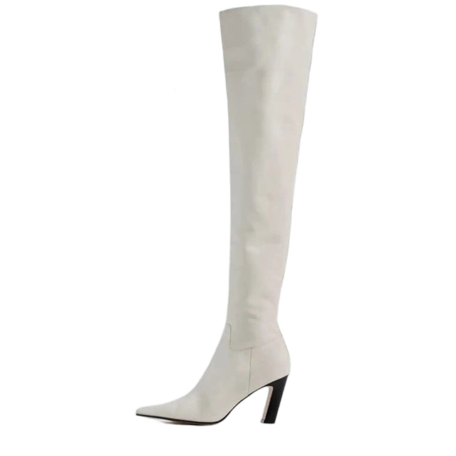 Step confidently into autumn and winter with these over-the-knee women's boots, expertly crafted from genuine leather to provide lasting quality and comfort. Featuring a sleek pointed toe and elegant heels, they blend sophistication with practicality, making them perfect for office wear or stylish everyday looks. The boots are designed to keep you warm while enhancing your outfit with a polished finish. These versatile boots offer a timeless design that complements various styles, ensuring you stay fashionable throughout the colder seasons. Durable and refined, they are a wardrobe essential for women who want both comfort and elegance.