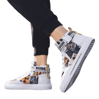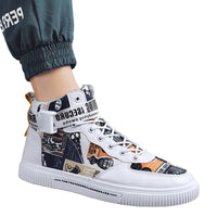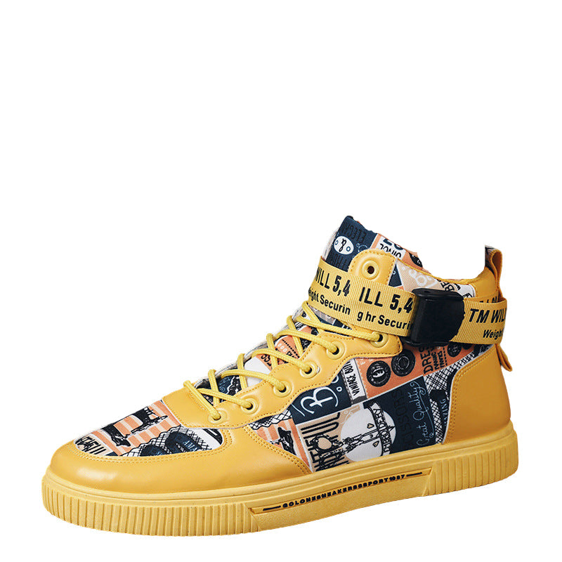 These trendy high-top shoes combine style and functionality, perfect for teenagers, junior high students, and young men looking for versatile footwear. Featuring a round toe and color-blocking design, they come in various vibrant options including white-yellow, white-black, all-yellow, and white-red. Constructed with durable PU uppers and a thick rubber foam sole, the shoes offer wear resistance and comfort during sports or daily activities. The shallow mouth design with lace-up closure ensures a secure fit, while the breathable cloth interior enhances comfort. Suitable for winter, these shoes provide a stylish and practical choice for youth aged 18 to 40.