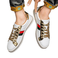 These men's board shoes combine casual style with breathable comfort, perfect for everyday wear in spring. Featuring a round toe and low-cut pigskin upper, they offer durability and a sleek, solid colour design highlighted by subtle car stitching. The flat rubber sole, crafted with meticulous sewing, ensures long-lasting support, while the mesh inner lining promotes airflow to keep feet cool. Designed for youth aged 18-40, the shallow mouth and front tie closure provide an easy fit. Available in platinum, silver, and black, these versatile shoes effortlessly complement a variety of casual outfits.